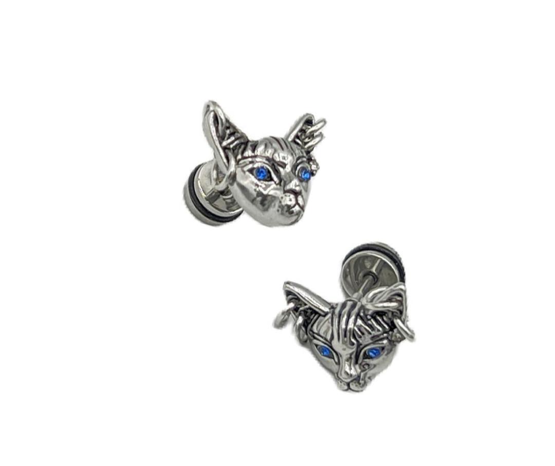 پیرسینگ گوش طرح گربه با چشم‌های آبی کریستالی، ساخته‌شده از استیل رنگ ثابت و ضدحساسیت. سبک، محکم و مناسب استفاده روزانه. انتخابی عالی برای عاشقان گربه و استایل‌های خاص.